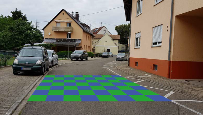 März der Beginn/das Ende der Straße mit Querbalken und Piktogrammen (Fuß, Rad und Kfz) markiert und es werden insgesamt vier Farbfelder (5mx5m) in den Farben Blau und Grün angebracht.