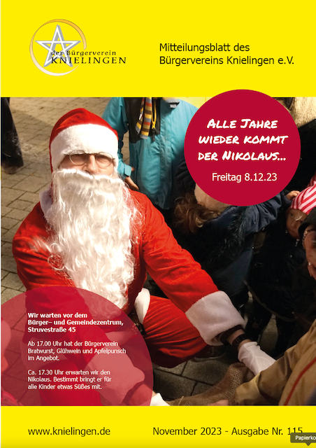 Den Knielinger 115 halten Sie gerade in den Händen oder Sie lesen die online Ausgabe schon vorab. Der Knielinger muss gefüllt und finanziert werden. Wir möchten über aktuelle Knielinger Themen informieren und geben den Knielinger Vereinen die Möglichkeit über die Vereinstätigkeit zu berichten. Finanziert wird der Knielinger durch die Werbeeinnahmen. Das ist 2-mal im Jahre eine große Herausforderung für den Vorstand und die Redaktion. Herzlichen Dank an das kleine Team, für die großartige Leistung. Das Team wünscht sich dringend Verstärkung.