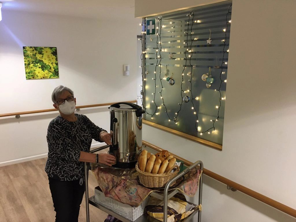 Der Dambedei gehört zu Karlsruhe im Advent wie der selbstgepresste Apfelsaft von heimischen Streuobstwiesen zu Knielingen. Mit der Kombination aus beiden Traditionen hat Ursula Hellmann, Vorsitzende des Bürgervereins Knielingen und des Heimbeirates des AWO Seniorenzentrums, den Bewohner*innen und Mitarbeiter*innen der Einrichtung eine große vorweihnachtliche Freude bereitet. So zog Sie, natürlich unter Einhaltung der aktuellen Hygienegebote, mit einem Wagen durch das Haus, um allen Anwesenden mit einem frischen Dambedei und leckerem selbstgemachten Apfelpunsch aus Knielinger Apfelsaft den Tag zu versüßen. Dabei entstand so manches angeregte Gespräch, Erinnerungen wurden wach und die eine oder andere Weihnachtsanekdote wurde erzählt.