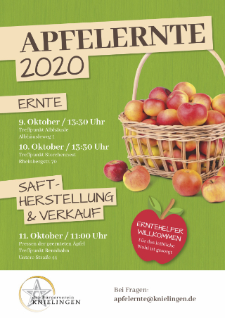Vom 09.-11.Oktober heißt es in Knielingen wieder Äpfel sammeln und Apfelsaft draus machen.