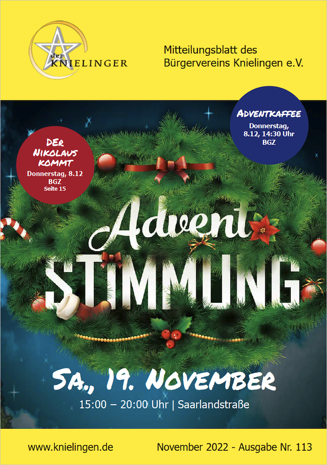 Punktlich wie ein Uhrwerk ist Mitte November der neue Knielinger fertig und wird ab dem Wochenende durch unsere freiwilligen Verteiler der Knielinger in allen Knielinger Haushalten verteilt.