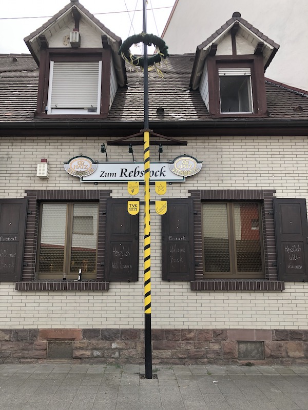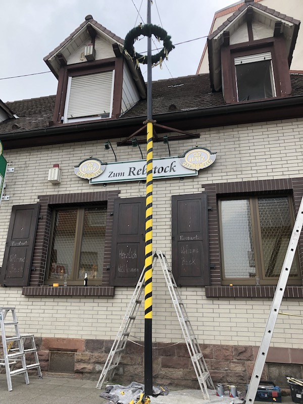 Traditionell wird ein Maibaum von in der Regel jungen Burschen am Vorabend des 1. Mai gestellt, dieses Ereignis feucht-fröhlich vom gesamten Dorf begleitet und am Monatsende wieder abgebaut. Der Abbau wurde beim Maibaum in der Saarlandstraße 78 irgendwie versäumt – und zwar seit 2013. So stand dieser Maibaum acht Jahre lang vor dem „Rebstock“. Niemand störte sich daran. Niemand kümmerte sich darum. Niemand erfreute sich daran; vielleicht abgesehen von dem einen oder anderen Vierbeiner, der an dessen Stammfuß seine persönliche Marke setze. Dieser Maibaum stand einfach da. Ungesehen, unbeachtet, ungeliebt.